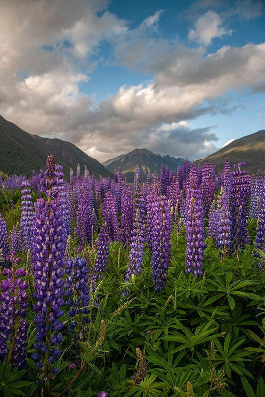 South Island Lupine blooming in valley White Modern Wood Framed Art Print with Double Matting by Jaynes Gallery