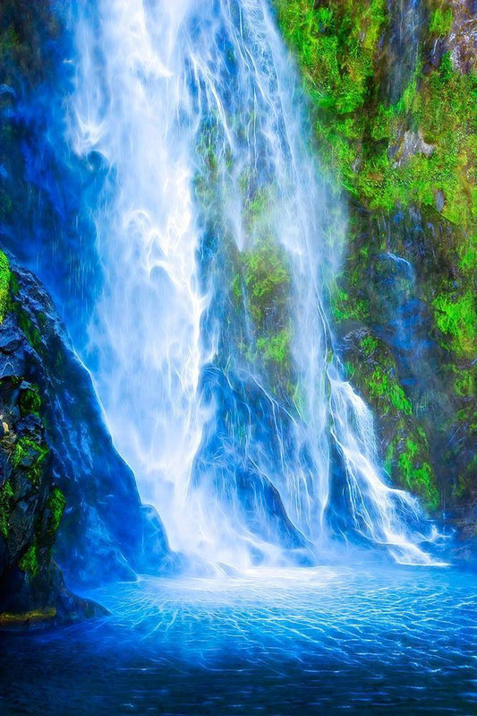 South Island Abstract of waterfall in Milford Sound White Modern Wood Framed Art Print with Double Matting by Jaynes Gallery