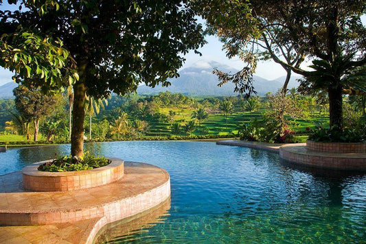 Indonesia-Java Landscape with pool and rice terraces at resort White Modern Wood Framed Art Print with Double Matting by Jaynes Gallery