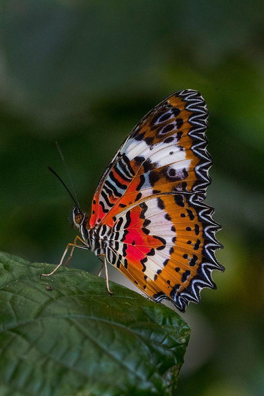 Indonesia-Bali Malay lacewing butterfly on leaf White Modern Wood Framed Art Print with Double Matting by Jaynes Gallery