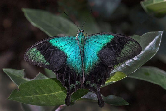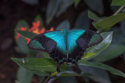 Indonesia-Bali Blue swallowtail butterfly on leaf White Modern Wood Framed Art Print with Double Matting by Jaynes Gallery