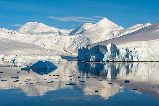 Landscape of snow covered island in South Atlantic Ocean-Antarctica White Modern Wood Framed Art Print with Double Matting by Su, Keren
