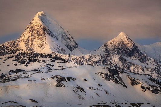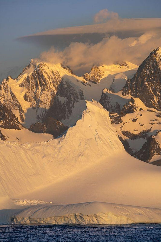 Antarctica-South Georgia Island Sunset on snow-covered mountains glaciers White Modern Wood Framed Art Print with Double Matting by Jaynes Gallery