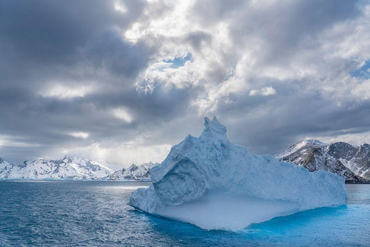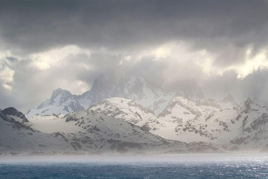 Antarctica-South Georgia Island-Coopers Bay Storm clouds over mountains White Modern Wood Framed Art Print with Double Matting by Jaynes Gallery