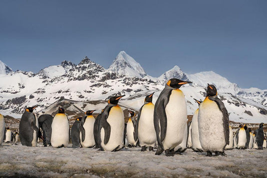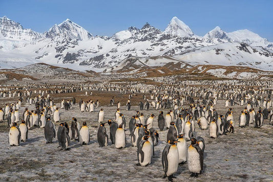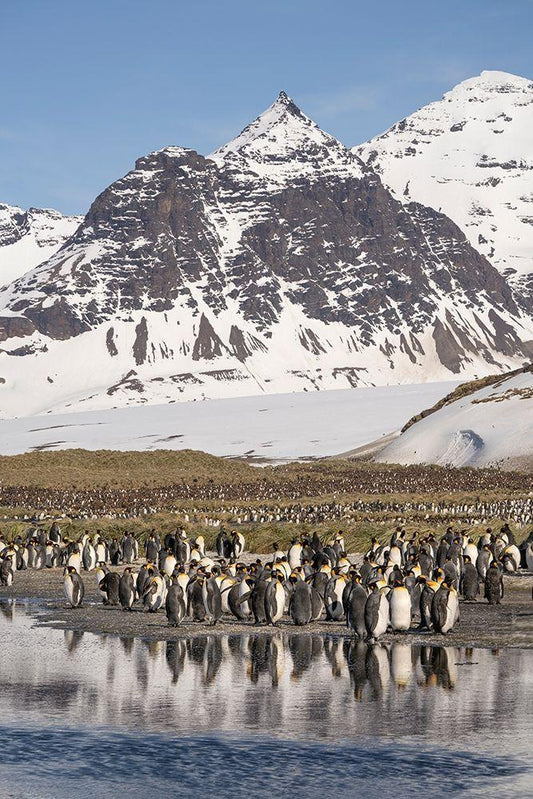 Antarctica-South Georgia Island-St Andrews Bay Landscape with mountain and king penguin colony White Modern Wood Framed Art Print with Double Matting by Jaynes Gallery