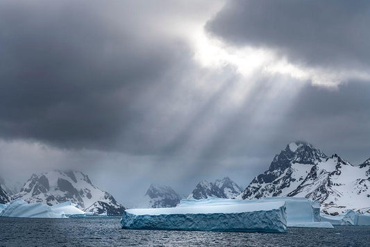 Antarctica-South Georgia Island Sunbeams light up icebergs White Modern Wood Framed Art Print with Double Matting by Jaynes Gallery