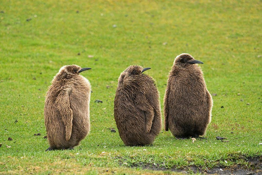 Falkland Islands-Saunders Island Close-up of king penguin chicks or oakum boys White Modern Wood Framed Art Print with Double Matting by Jaynes Gallery