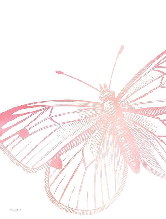 Pink Butterfly II White Modern Wood Framed Art Print with Double Matting by Ball, Susan