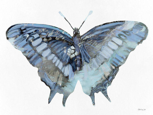 Blue Butterfly White Modern Wood Framed Art Print with Double Matting by Stellar Design Studio