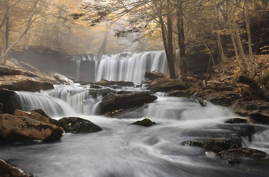 Golden Oneida Falls White Modern Wood Framed Art Print with Double Matting by Deiter, Lori