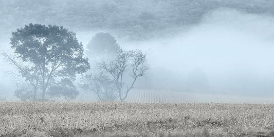 Foggy Forest in Fall White Modern Wood Framed Art Print with Double Matting by Deiter, Lori