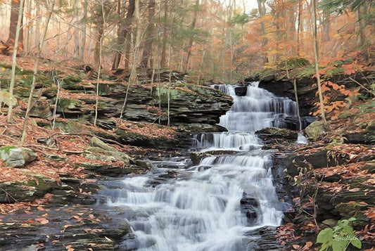 Waterfall Steps at Pigeon Run White Modern Wood Framed Art Print with Double Matting by Deiter, Lori