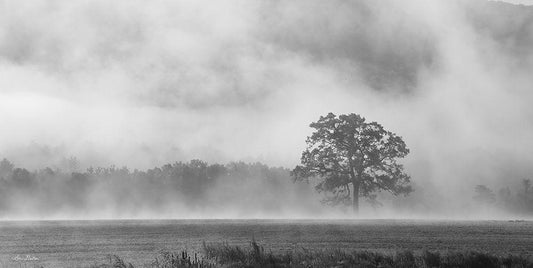 Old Oak in Fog White Modern Wood Framed Art Print with Double Matting by Deiter, Lori