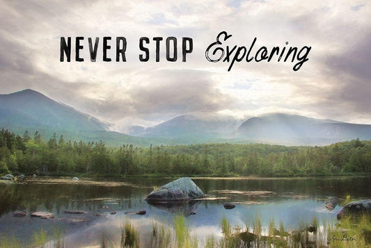 Never Stop Exploring White Modern Wood Framed Art Print with Double Matting by Deiter, Lori