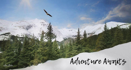 Adventure Awaits White Modern Wood Framed Art Print with Double Matting by Deiter, Lori