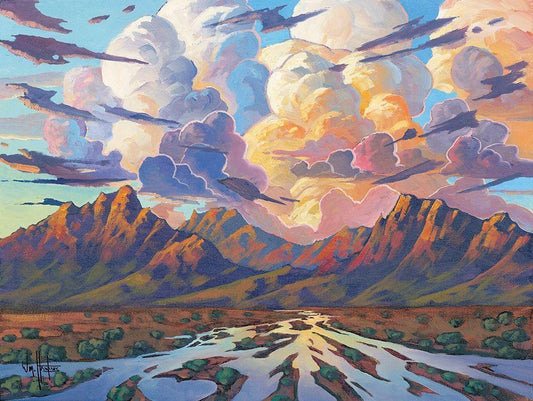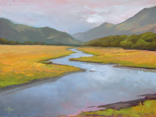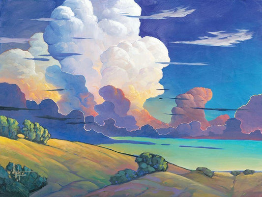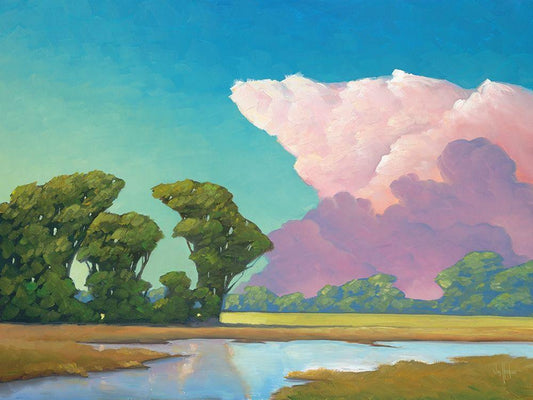 River and Sky Meet The Clouds White Modern Wood Framed Art Print with Double Matting by Hawkins, William