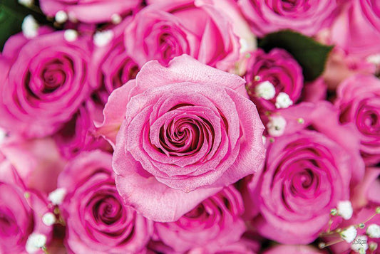 Fuchsia Roses White Modern Wood Framed Art Print with Double Matting by Quillen, Donnie