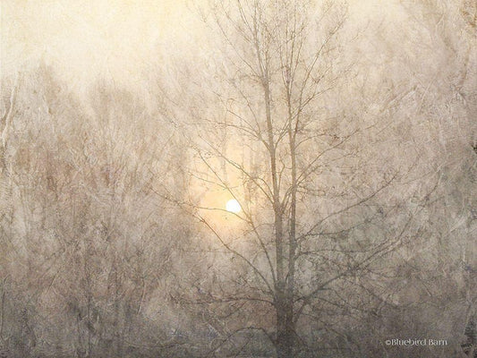 Foggy Soft Morning Landscape White Modern Wood Framed Art Print with Double Matting by Bluebird Barn