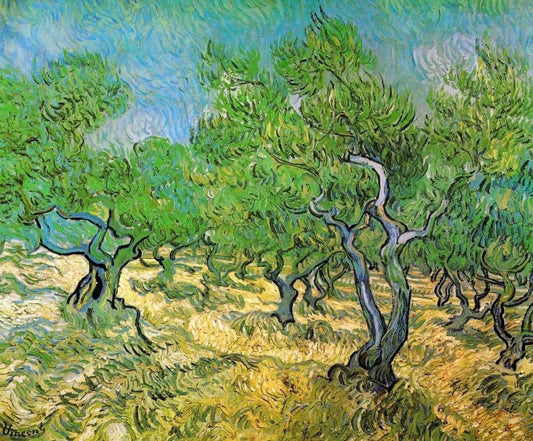 Olive Grove White Modern Wood Framed Art Print with Double Matting by Van Gogh, Vincent