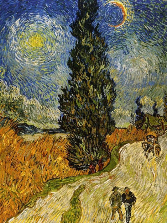 Road Cypress And Star White Modern Wood Framed Art Print with Double Matting by Van Gogh, Vincent
