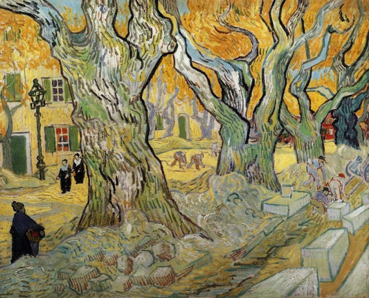 The Road Menders White Modern Wood Framed Art Print with Double Matting by Van Gogh, Vincent