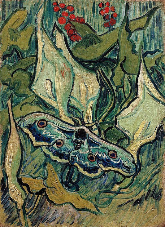 Emperor Moth White Modern Wood Framed Art Print with Double Matting by Van Gogh, Vincent