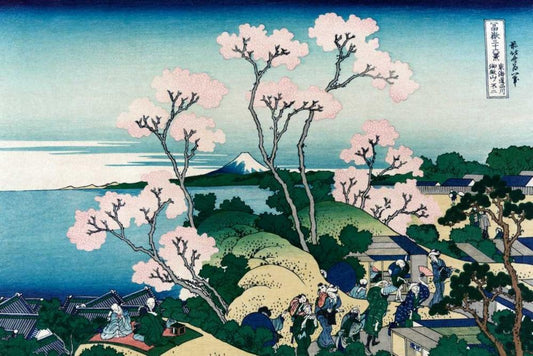 Goten-yama-hill. Shinagawa on the Tokaido Road, 1830 White Modern Wood Framed Art Print with Double Matting by Hokusai