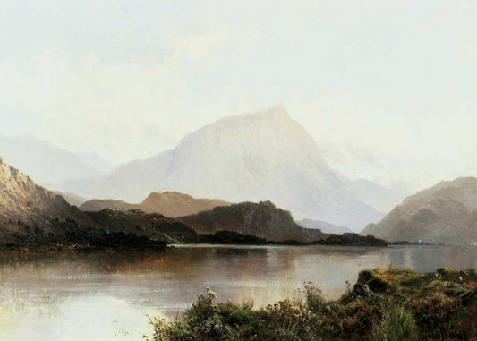 The Hills of Loch Lomond White Modern Wood Framed Art Print with Double Matting by De Breanski, Alfred