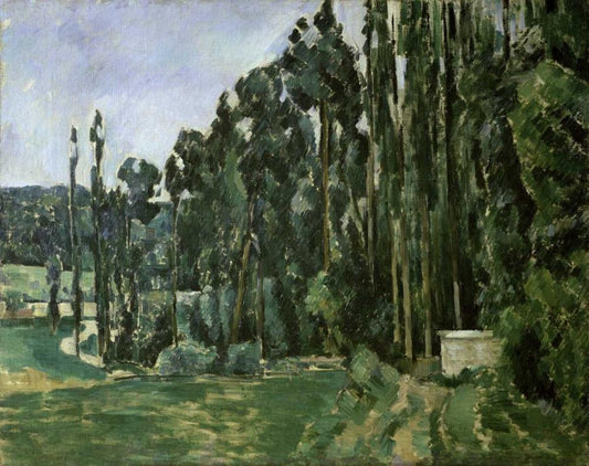 The Poplar Trees White Modern Wood Framed Art Print with Double Matting by Cezanne, Paul