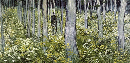 Undergrowth with Two Figures White Modern Wood Framed Art Print with Double Matting by Van Gogh, Vincent