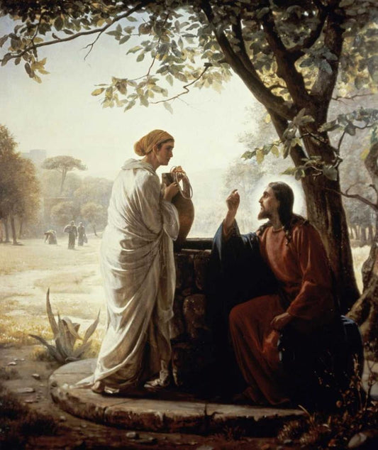 The Woman of Samaria White Modern Wood Framed Art Print with Double Matting by Bloch, Carl