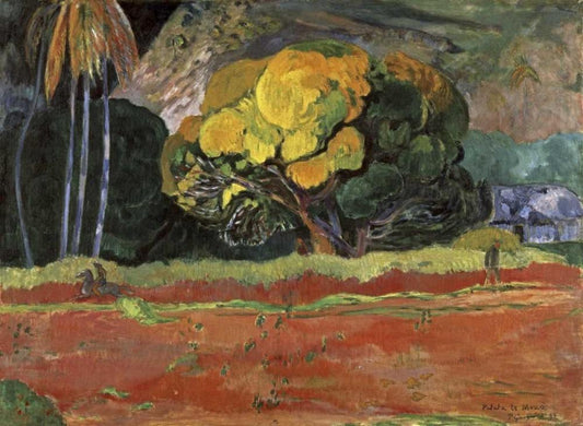 Tahiti Landscape White Modern Wood Framed Art Print with Double Matting by Gauguin, Paul