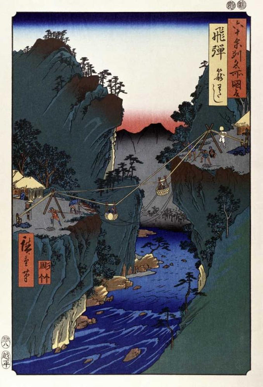 Hida Province - Kago Watashi Basket Ferry White Modern Wood Framed Art Print with Double Matting by Hiroshige