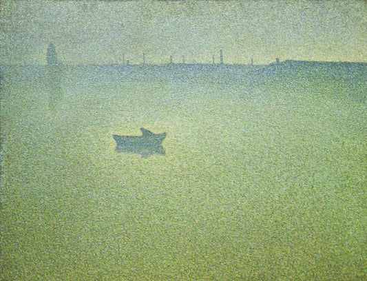 Seine at Dawn White Modern Wood Framed Art Print with Double Matting by Angrand, Charles