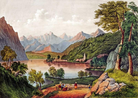 Lake Lugano, Italy White Modern Wood Framed Art Print with Double Matting by Currier and Ives