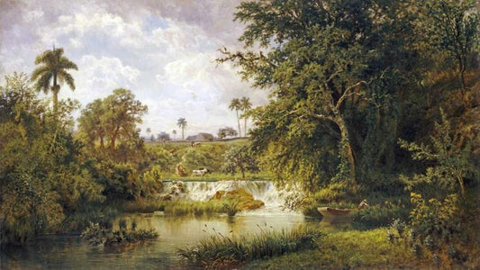 Paisaje Con Vacas White Modern Wood Framed Art Print with Double Matting by Chartrand, Esteban