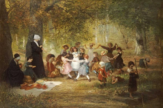 Ring a Ring a Roses White Modern Wood Framed Art Print with Double Matting by Dieffenbach, Anton