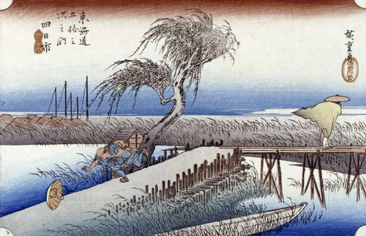 Mie River Near Yokkaichi White Modern Wood Framed Art Print with Double Matting by Hiroshige