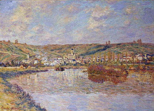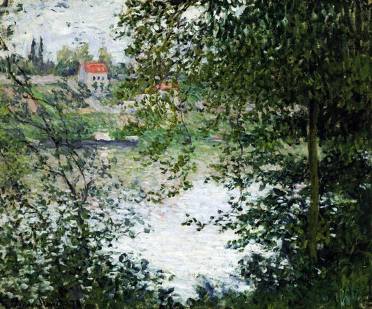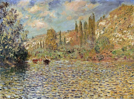 The Seine at Vetheuil White Modern Wood Framed Art Print with Double Matting by Monet, Claude