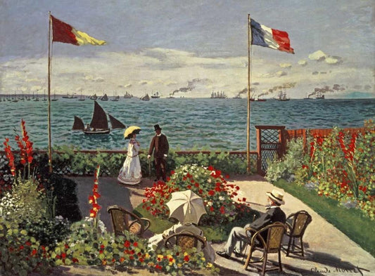 The Terrace at Sainte-Adresse White Modern Wood Framed Art Print with Double Matting by Monet, Claude