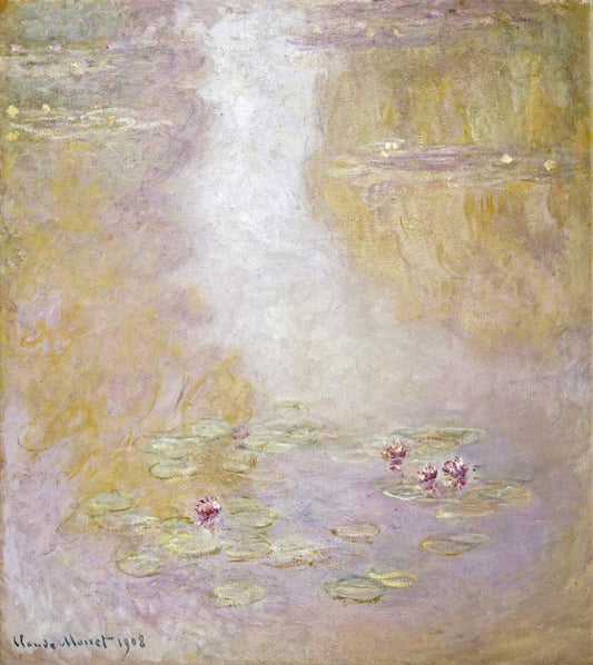 Water Lilies White Modern Wood Framed Art Print with Double Matting by Monet, Claude