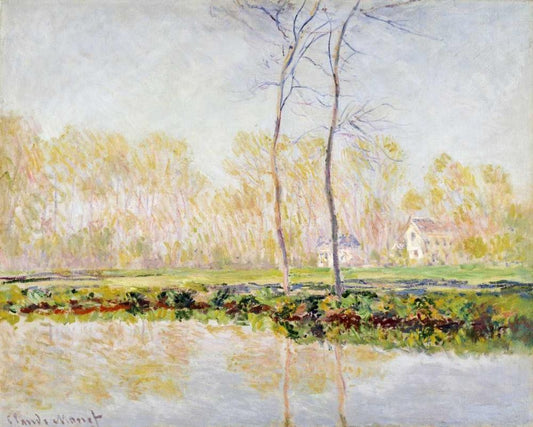 The Banks of the River Epte at Giverny White Modern Wood Framed Art Print with Double Matting by Monet, Claude