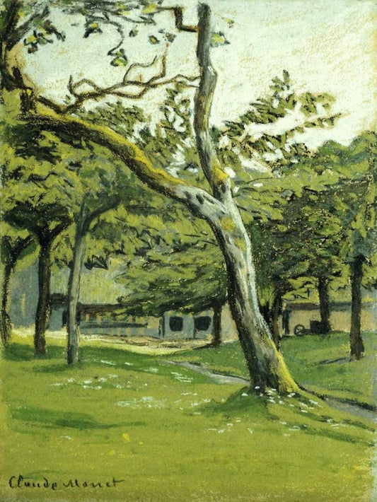 An Orchard White Modern Wood Framed Art Print with Double Matting by Monet, Claude