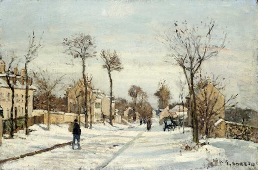 Snowy Road, Louveciennes White Modern Wood Framed Art Print with Double Matting by Pissarro, Camille