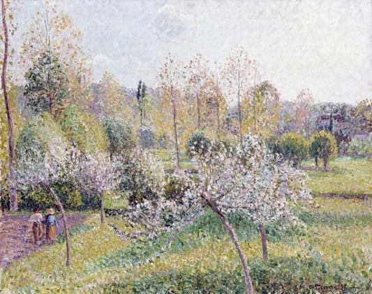 Apple Trees In Blossom, Eragny White Modern Wood Framed Art Print with Double Matting by Pissarro, Camille