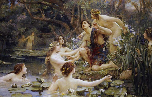 Hylas and The Water Nymphs White Modern Wood Framed Art Print with Double Matting by Rae, Henrietta