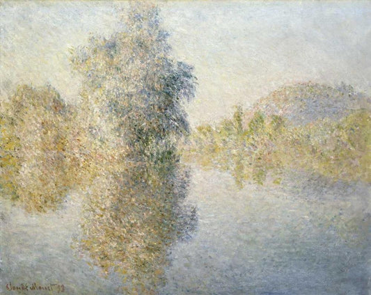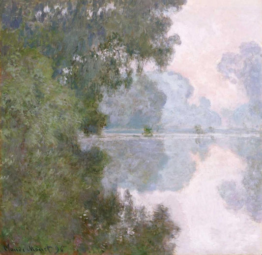 Morning on the Seine, Near Giverny White Modern Wood Framed Art Print with Double Matting by Monet, Claude