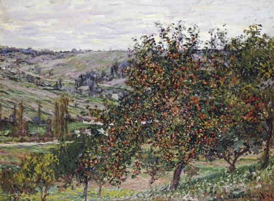 Apple Trees Near Vetheuil, 1878 White Modern Wood Framed Art Print with Double Matting by Monet, Claude