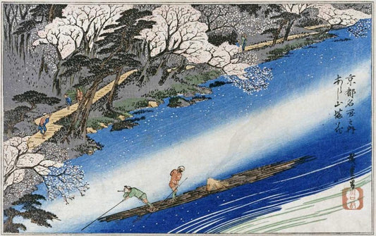 Cherry Blossoms at Arashiyama White Modern Wood Framed Art Print with Double Matting by Hiroshige