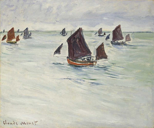Fishing Boats off Pourville, 1882 White Modern Wood Framed Art Print with Double Matting by Monet, Claude